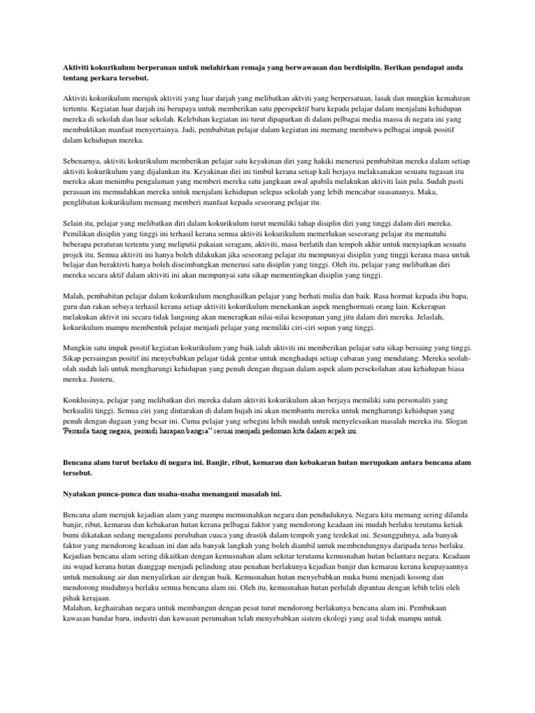 Aktiviti Kokurikulum Berperanan Untuk Melahirkan Remaja Yang Berwawasan Dan Berdisiplin Pdf